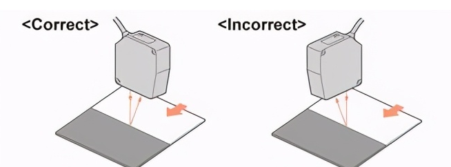 當對材質和顏色明顯不同的移動物體進行位移測量時,可以通過如下所示安裝傳感器將誤差降至最di。