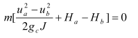 根據伯努利方程,流體在兩點a和b的能量保持不變,即: