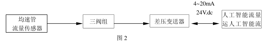 一體化智能型均速管流量計由一體化均速管流量變換器和人工智能流量運算顯示器兩部分組成。其中一體化均速管流量變換器由均速管流量傳感器亦稱阿紐巴Annubar流量傳感器、三閥組板和差壓變送器構成。測量原理框圖見圖 2。