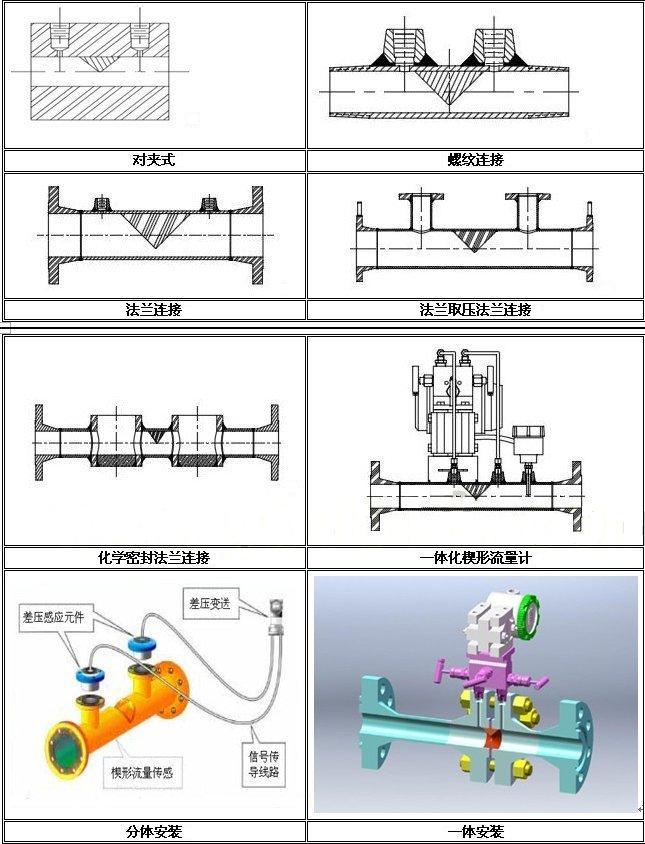 按其組裝方式分為一體型和分離型,按其連接方式分為法蘭連接、焊接連接、螺紋連接及對夾式連接,按其取壓方式分為普通取壓、法蘭密封取壓等結構。